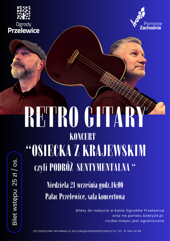21 września w pięknych wnętrzach Pałacu Ogrodów Przelewice odbędzie się wyjątkowa „Podróż Sentymentalna”- niezwykłe spotkanie z twórczością Agnieszki Osieckiej i Seweryna Krajewskiego w wykonaniu Zespołu RETRO GITARY![]()